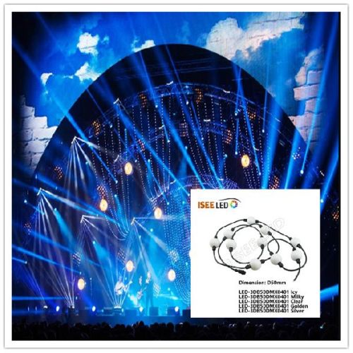Contact SupplierDisco 50mm 3D effect led pixel ball LED-3DB50DMX0401 Disco led pixel ball are designed to form a video light curtain with 200mm pixel pitch. The LED Pixel ball is made up from 5m long strings, each containing 25PCS LED balls with 200mm pixel pitch. Each 50mm LED  Pixel Ball contains 4PCS powerful RGB LEDs built into the Milky white moulding. These can extend to a maximum length of 8 meters (using 40 balls) and total power consumption is just 48W. The 50mm led pixel ball advantages include: 1. The uniqueness of a full view angle of 360°2. The creativity to display 3D effects and content3. The flexibility of extending the length of a string (up to 8 m)4. IP65 rating These IP65 rated LED Pixel Balls can be viewed in 360° and be used to create alluring 3D spatial effects.This makes them suitable for a wide range of applications, including TV scenography, theme parks, exhibitions, video art, clubs, shopping malls - and just about any fixed installation. Disco 50mm 3D effect led pixel ball Application 3D Vision figure, Interior design for clubs, themed environments, Stage video elements for intimate or large concert productions, Television awards and game shows, Video Art projects .  Model NO.  LED-3DB50DMX0401  LED-3DB40DMX0401  Diameter  50mm  40mm  LED  4PCS SMD RGB 5050  Emitting angle&