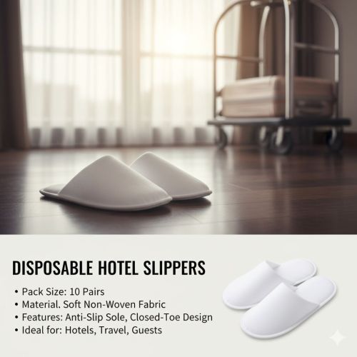Contact SupplierOur Disposable Spa Slippers are crafted from premium non-woven fabric and EVA sole to provide comfort, hygiene, and convenience for salon, spa, and hotel use. These lightweight slippers ensure a soft and comfortable feel, offering clients a clean and safe experience during treatments such as facials, massages, pedicures, and spa sessions. Designed for single-use, they maintain high hygiene standards and are suitable for both men and women.