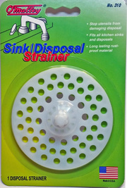 Contact SupplierThe O'Malley SinkDisposal Strainer fits nearly all garbage disposal and kitchen sink drains. Measuring 3 inches in diameter, the SinkDisposal Strainer will prevent unwanted items from falling into the garbage disposal that may result in damaged kitchenware and garbage disposals. It is a much better strainer than most on the market as it is durable and has no moving parts or rubber that would be prone to failure. Made from a modern multi-purpose plastic it will not fall apart, discolor, or infect with mildew; which many other strainers on the market commonly do. This product is made in the USA on our modern robotically equipped injection molding machines. This allows us to sell the Strainer at a low price without the hassles incountered of importing from abroad. The SinkDisposal Strainer is available in a wide variety of packaging configurations including: full retail blister packaged, mail order, or in bulk.
