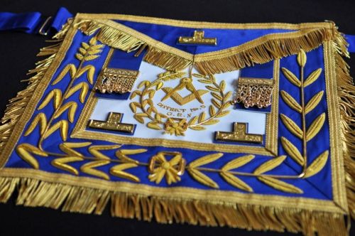District Deputy Grand Master Dress Aprons Hand Emboidered, Pocket in the back with adjustable belt Conform to all Canadian Grand Lodge Specifications Size 16 x 18 inches Please Indicate, District Name, Number and Grand Lodge Initials Optional Name Embroidered under V flap