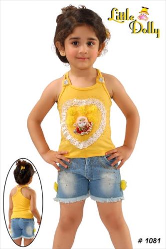 we are offering divider top. a cool combination of denim with hosiery material for a great comfort. color available - 1> pink 2> lemon size - 18' to 26' (1-5 years old).