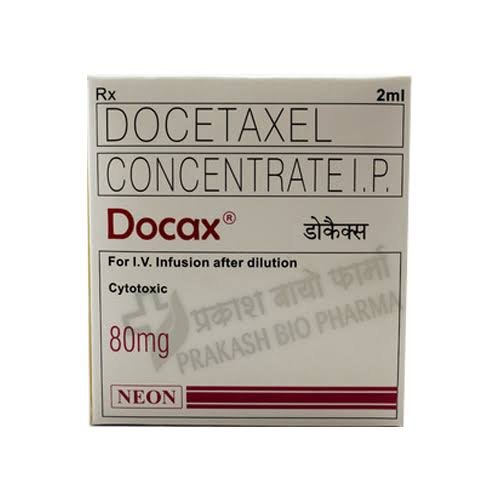 Docax 80mg injection is used in the treatment of head and neck cancer,lung cancer,breast cancer.