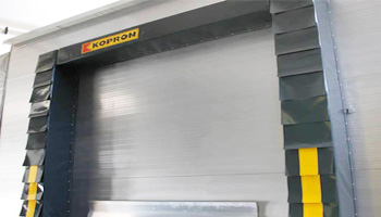 A flexible pad installed around the door of a loading dock to form a tight seal between the receiving doors and the opening of a truck that is backed into the dock. Essential products for cold stores.