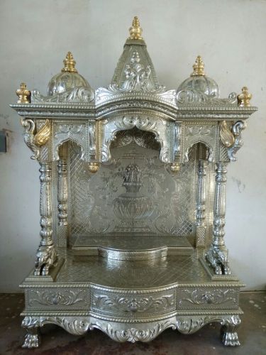 Contact SupplierWe offer a stunning Dome Arch Engraved Deity Temple crafted with a cast alloy frame and embossed panels. This exquisite home temple features intricate floral scrollwork design, engraved deity motifs, and symbols on the back panel. The color scheme of antique chrome and gold highlights adds a touch of elegance. With a weight of approximately 7 kg, it comes packaged securely in foam wrap and a carton box. The hand-carved detailing, divine icons, raised platform, and ornamental pillars showcase exceptional craftsmanship. Ideal for creating a sacred space in your home.