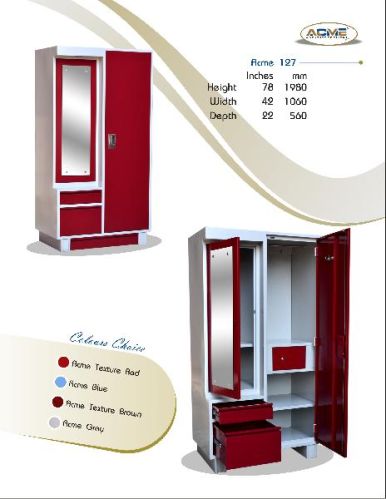 Acme 127 1. Material : tata cr sheet 2. Gauge : 20 gauge door : 22 gauge cabinet & shelves : 24 gauge back 3. Paint : deco, matte, enamel