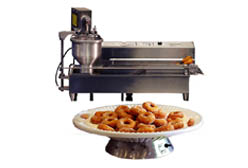 This donut maker produces high quality, well formed cake donuts right out the box, and makes excellent raised donuts with a few accessories. Capacity is approximately 37 dozen per hour. with a mini donut conversion kit, you can make both full size and mini donuts. The mark ll is compatible with the insider Vent less Cabinet. All electric donut machine, capacity approximately 37 dozen standard size donut per hour. Deposits 2 standard donuts per conveyor row. A half-speed switch can cut output to 1 per row.