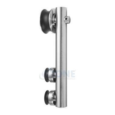 Large diameter rollers, Door held at two points, Countersunk glass preparation for better grip, Suitable for 150Kg. door weight application, Stainless Steel Grade