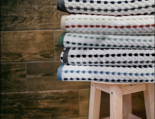 Contact SupplierWe offer the Dot Style Series White Accent Cotton Towels, perfect for bath applications. Made from 100% cotton, these towels feature a white base with red dot patterns in a smooth weave texture. The standard bath towel size of approximately 140cm X 70cm ensures optimal coverage. The design showcases horizontal dot rows on a white base, adding a stylish accent to your bathroom. Easy to care for, these towels are machine washable. Packaged in a folded stack on a wooden stool, these towels are display-ready. Ideal for manufacturers, suppliers, and traders looking to provide high-quality bath towels.