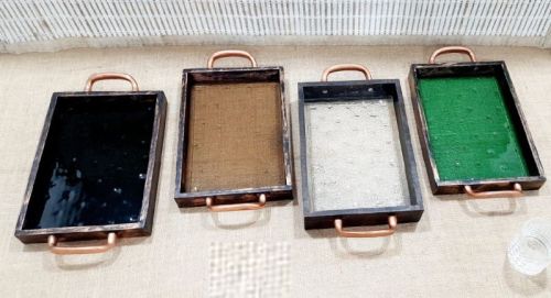 Rectangular Wood Polished Dots Serving Tray, For Homes, Hotels, Restaurants, Size : 39 X 22 X 7 Cm