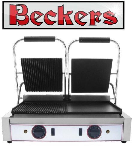 double cast iron grill  number of price list: 116 code: pia03040 model: er2l2 power: 1800 w (x2) / 220∾240v / 50∾60hz temperature: +50°c ~ +300°c cooking surface: 240x480 mm weight: 27 kg stainless steel body cast iron plate left plate ribbed – right plate flat 2 separate thermostats dimensions: 565x310x220 mm (h 520 mm cover up) packages dimensions: 630x440x270 mm origin: asia.