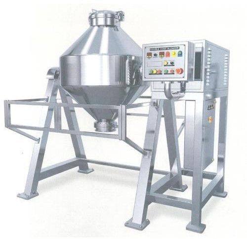 Contact SupplierDouble Cone Blender is an efficient and versatile machine for mixing of dry powders and granules homogeneously. All the contact parts are made of stainless steel. The effective volume for optimum homogeneity is between 35-70% of gross volume. Our double cone design eliminates dead spots.The effective volume for optimum homogeneity is between 35-70% of gross volume. The SLANT double cone design eliminates dead spots which occasionally occur in conventional double cone mixer. It can be used for pharmaceutical, food, chemical, cosmetic products etc. Salient Features: The conical shape at both ends enables uniform mixing and easy discharge. The cone is statically balanced which protects the gear box and motor from any excessive load. Powder is loaded into the cone through a wide opening and discharged through a butterfly or a Slide valve. Depending upon the characteristic of the product, paddle type baffles can be provided on the shaft for better. Contact parts are made of SS 304 or SS 316. Flame proof electrical can be provided as optional. Dust free bin charging system ensures minimum material handling. Mixing, uniform blending and de-agglomeration.