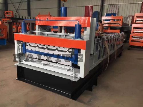 Contact SupplierDouble Deck Steel Roof Board Roll Forming Machine Double Deck Steel Roof Board Roll Forming Machine also called double layer roll forming machine. Most of client choice the double layer roll forming machine instead of single layer roof sheet machine, because one set of double deck roll forming machine can produce two different profile roof or wall panel. But it only use less space and cost. If your workshop is not big enough and capital is limited, this roll forming machine will be your best choice. Decoiling the sheet→Sheet guiding→Roll forming→Measure length→Cutting the panel→Panels to product stand Double Layer Roll Forming Machine Our machine has the following advantages: 1. Adopt the guider pillar and motorized cutings. This design make our machine stable fast cutting and long service life. you can produce 2 different panels with 1 set of double layer roll forming machine. 2. Save cost for clients. Current Capital is so important to run a business. 3.Save Working Space. The workshop is not big enough to install two sets of roll forming machine for some of customers. For this situation, double layer roll forming machine is your best choice. You only need one space of machine to produce two types of profiles. You can check our machine over all. Not only beautiful in the surface but also good quality. Technical parameters: Material