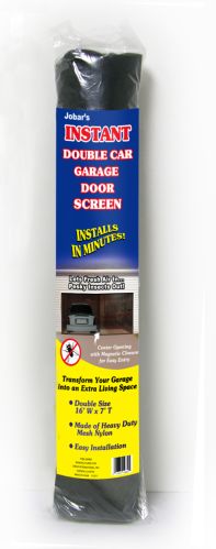 DOUBLE GARAGE DOOR SCREEN Keep pesky mosquitoes & flies out and allow fresh air in. Now you can work in the garage or use it as an extra living area without worry. The screen hangs from your garage door opening and installs in minutes using grommets and a simple hook and lo ID JB4869 BRAND IDW-GNO CASE PACK 12 CASE WEIGHT 33.15 CASE LENGTH 25.2 CASE WIDTH 13.6 CONSUMER PACK POLYBAGCOLOR LABEL CONSUMER PACK DIMENSIONS 25.5 X4 X4 UPC EAN NUMBER 017874148691