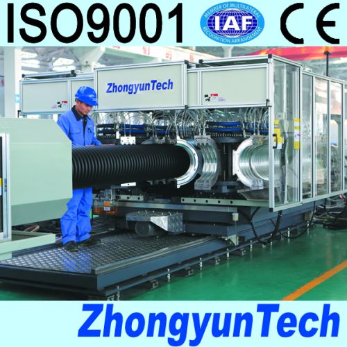 nnovative mould blocks cooling solution of Model 500H corrugator from ZhongyunTech brings a fast and high efficient cooling of mould blocks, substantially increasing the production efficiency of PE double wall corrugated pipes.