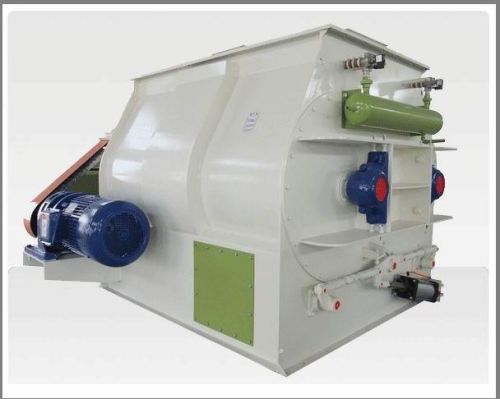 feed paddle mixer is a horizontal mixing device widely used for mixing grain powder in feed pellets production line . Its design is based on a u – type tank with dual shafts and paddles extending the length of the tank. The action of the pitched paddles moves material from the bottom and forces the material back down between the shafts, which will give a complete and homogeneous mixture of materials. Ideal mixing machine for homogeneous mixing of different ingredients in a shortest time (cv