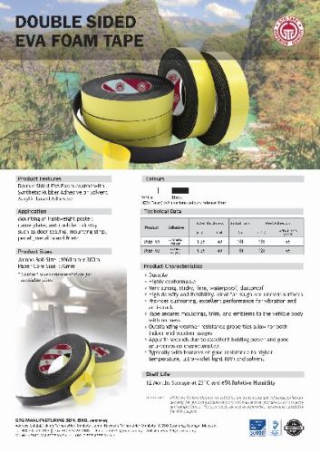 Good quality double sided eva foam tape suitable for mounting of light article for temporary applications i.e : posters, notice, statement, name plate, etc. Easy removal and doesn't leave glue residue. Available to you now cheaply. Contact us now.