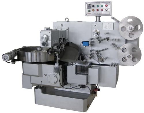 BAFU DWM550 Double Twist Packing Machine 1.Single or double layer film can be available; 2.The structure of the machine is logical and performance is stable and easy to operate. 3.100% Packaging , no empty bag . Product application: all kinds of hard candy and milk candy & ball chocolate; Technical parameter Speed: up to 550bags/min Product size :12-34 (L ) X 10-28(W) X 6-20(H) Shape : Rectangle , square , oval , ball, round and so on . Power :2.5kw 380V 3P Overall size 1950 X 1090X 1475mm Weight :1080 Kgs;