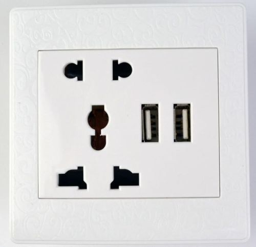 We are offering double usb wall socket with 5 slots. Input:ac 110-250v13a usb output:dc 5v1a ac socket slot:universal size:86*86*20mm