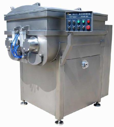 This vacuum meat mixer is made of good quality stainless steel 304 materials, with Double shaft elliptical ration screw-arranged fan shape impeller. It can homogenize various kinds of material of porridge state or viscous state with certain fluidity material is uniformly mixed sufficiently achieving ideal mixing effect. It is especially suitable for large-medium scale meat processing enterprise. Details : Volume - 300Liter Output - ±100-200kg/batch Voltage - 380V3phase50HZ5.5KW MixingSpeed:42r/min Weight - 700kg Dimension -