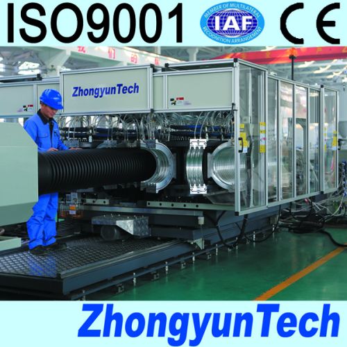 nnovative mould blocks cooling solution of Model500H corrugator from ZhongyunTech brings a fast and high efficient cooling of mould blocks, substantially increasing the production efficiency of PE double wall corrugated pipes.