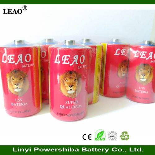 Place of Origin: Shandong, China (Mainland) Brand Name: leao or OEM Model Number: R20 Battery Type: Zinc Carbon Nominal Voltage: 1.5V Size: D Nominal Capacity: 1200mAh Certification: CEISO9001:2008RohsUNUL Application: Flashlights, radios, cameras, electronic clock, toys and so on Jacket: PVC or METAL Shelf life: 3 Years Voltage: 1.5 Discharge time: 320MINs Advantages: longlife,Environmental protection,leakproof,emf stability Color: red Keywords: d batteries 1.5V d 1200mAh battery