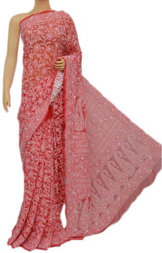 Ladies Chikankari Saree, For Dry Cleaning, Anti-Wrinkle, Packaging Type : Packet