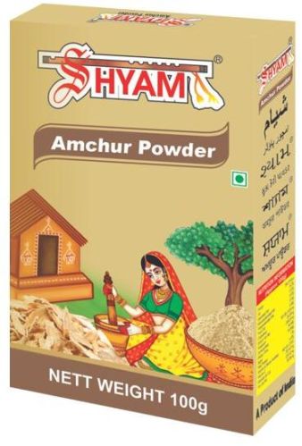 Ingredients : Dry Mango PowderAvailable in pack pouch size: 50g, 100g, 200g, 500g, 1 kg,Bulk Size : 25 kg HDPE Bag  Dry Mango Powder Box