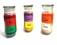 Contact SupplierDual coloured and scented candle in big glass jar with lid. Burning time 90 hours. Paraffin wax/Soy wax/Palm wax/Bees wax. Cotton/wooden wick. Multiple scents available to chose from. Customization is possible.Â