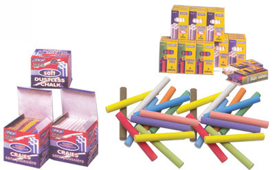 OMEGA imported soft dustless chalks. Writes smoothly without scratching & erases easily even in old black board. Truly dustless without any wax content. Lasts five times longer than the normal moulded chalks. Less breakage & wastage. Non-Toxic & Hygenic Available in white & assorted Colours.