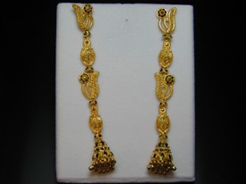 Can vary in length, weight, type, shape and appearance from region to region. The most common shape is the jhumka, a bell shaped hoop attached to a stud. Polished diamonds are generally used for nose rings, flower shapes, or a cluster of diamonds is classic favourites at weddings.Â