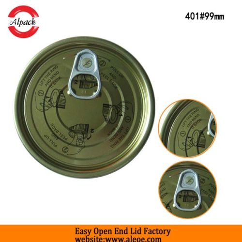 We offer The Most Popular Easy Open End Factory. 1.Model number: 401# tinplate easy open end 2.Material: Tinplate 3. Usage: Used for cans which pack dried food such as pet food, seasoning, milk powder and canned food, such as tuna fish, tomato, Meat and etc. 4.Feature: Non Spill,Safe Rim 5.Custom Order: Accept 6.Inside Diameter :98.9mm 7.Outside coating :gold,silver 8.Carton size:44*28*23 CM 9.PCS20'GP:875000 10.Thickness: