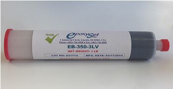 EB-350-3LV is a one component epoxy encapsulant intended for applications requiring excellent handling properties. The cured epoxy survives thermal shock and offers continuous service to over 220°C. Specifically, EB-350-3LV is suited for use on transistors and similar semiconductors. It can be used for encapsulation of watch ICs. EB-350-3LV is also used extensively in ferrite core bonding due to its excellent strength, high temperature resistance, and ease of use.
