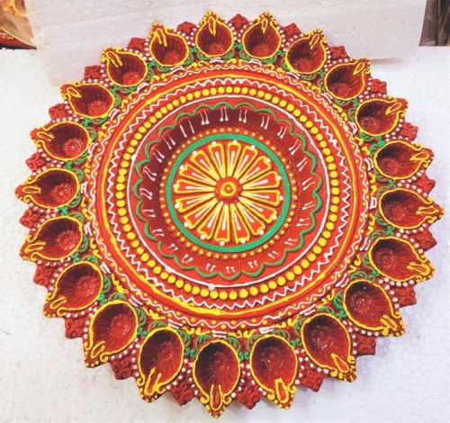 Polished CLAY ECD-109 21 DIYA THALI, Color : Multicolors