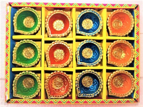 Clay ECD-17E 12 PCS DIYA BOX, Color : MULTICOLOUR for DIWALI, FESTIVAL