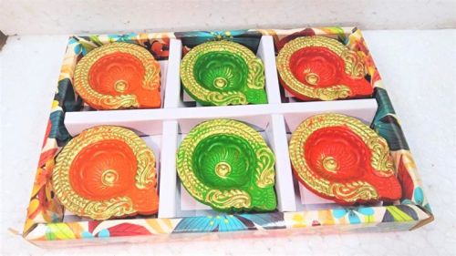 Clay ECD-19B 6 PCS DIYA BOX, Color : MULTICOLOUR for DIWALI, FESTIVAL