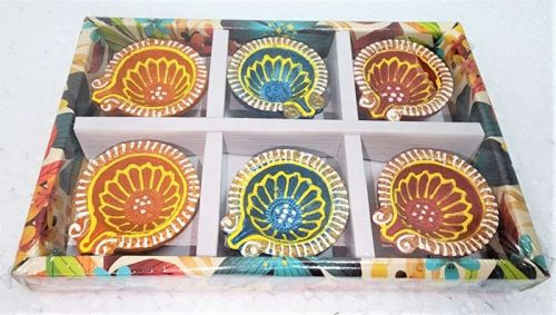 Polished CLAY ECD-20A 6 PCS DIYA BOX, Color : Multicolors