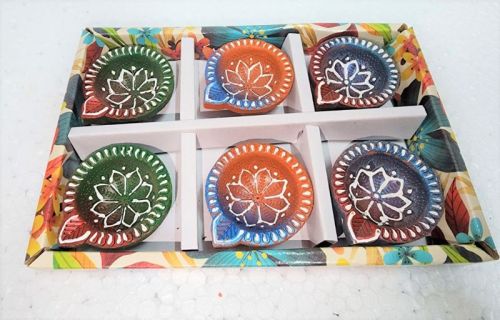 Clay ECD-20C 6 PCS DIYA BOX, Color : MULTICOLOUR for DIWALI, FESTIVAL