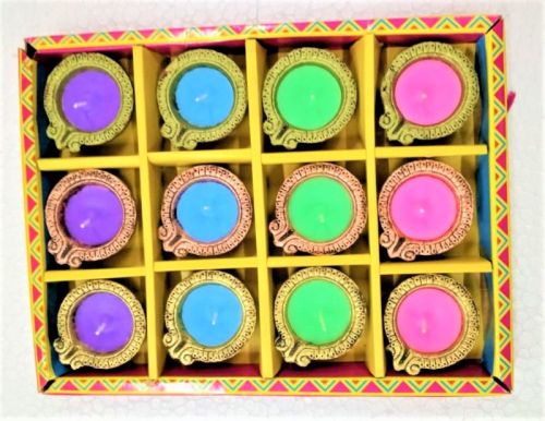 Polished CLAY ECD-23E 12 PCS DIYA WITH WAX BOX, Color : Multicolors