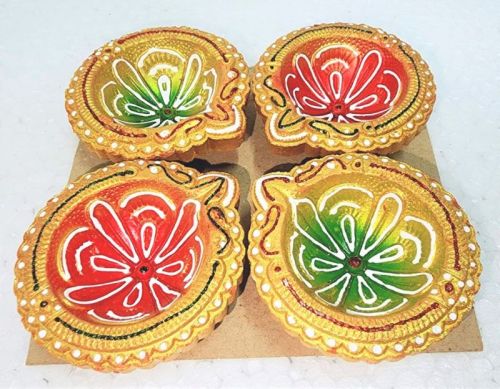 Ecd-34b 4 Pcs Double Shade And Glitterwork Diya