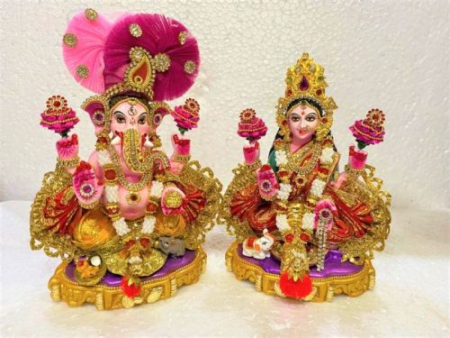 CLAY ECI-12 FULL DECO LAXMI GANESH, Color : MULTICOLOUR for DIWALI
