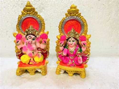 CLAY ECI-2 COLOR LAXMI GANESH SET, Color : Red, Brown, MULTICOLOUR