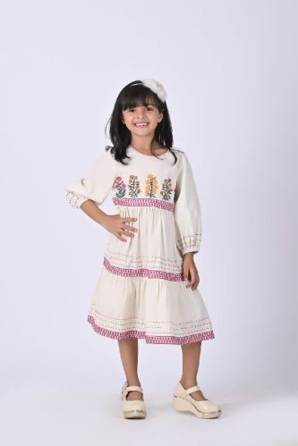 Contact SupplierElegance, Refinement and a touch of vintage for Ethereal Embroidery mini Dress. Made of crisp poplin, Embroidery on front yoke and layers, loop button opening in front, three-quarter sleeve with touch of rice stitches on it, Tier ruffle hem with embroidery.