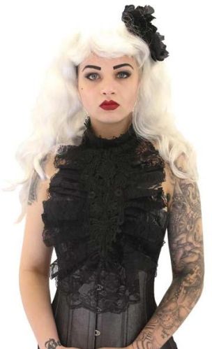 Our Edwina Long Applique Choker, made of polyester, adds multitude of grace to gothic attire. We are one of the leading Exporters and Suppliers of Edwina Long Applique Choker from UK. This Choker, we offer, has pleated lace design at its border. It is in the characteristic black colour, and its canvas strip is of 3”/7.6 cm measure. Plus, the Long Applique Choker has a satin ribbon that helps to fasten the canvas strip at the back. Measurements Floral applique : 14"/35.6 cm and choker: 3"/7.6 cm Length : 16.5"/42 cm and width: 10"/25.4