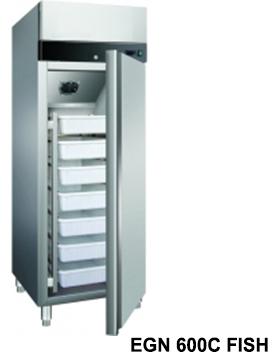 Reach In Fish Chiller Capacity (Ltrs): 600 Dimension (W x D x H Inch): 27 x 33 x 79 Temperature Range: –2°C ~ 8°C No. of Shelves: 3 Key Features: Tropicalized to perform at 38ºC ambient Static cooling with fan for uniform cooling DANFOSSEMBRACO compressor DixellEliwellCarell digital controller. Self closing door. Removable Magnetic Gasket Heavy duty castor, EBM Fan Motor SS 304 Food Grade Steel Inside Adjustable