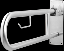 OPERATION : Swing-up grab bar is manually raised for approach or departure and lowered to horizontal position for support; once grab bar is raised to the full upright (vertical) position, counterweighted design prevents grab bar from falling back down to the full horizontal position.