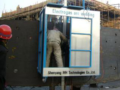 Clh-ii vertical electrogas welder is used for auto welding vertical seam for large storage tank in normal construction.the equipment ride on the edge of wall of tank and run along the shell to each of verticlal seam , it adopts special-purpose flux-cored wire protected by co 2 . It also adopts the enclosed welding technique by cycling cooling water. The face of weld is directly in the way of the water-cooling slip shoe, while the back of weld uses the water-cooling copper shelter line or ceramic backing. The welding tractor runs along the stiff track with the welding gun and slip shoe, rising with the weld molten pool synchronically. These actions force the weld to shape in only one time by cooling water, which can obtain pretty appearance of weld and products with high quality.