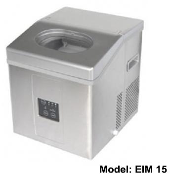 EIM15 Model: EIM 15 Capacity * (Kg24 Hr): 14 Recommended bin model: In-Built Bin size (Kg): 1 Machine dim. (W x D x H): 17 x 17 x 19 Ice bin dim. (W x D x H): NA Ice type: Bullet Key Features: Control board with display Makes 3 Size of bullet shape Ice Small, Middle & Big with voltage protection Water Supply by manual Stainless steel cabinet Low power consumption