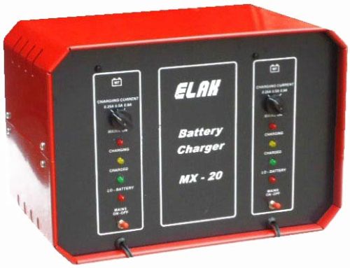 Contact SupplierWe offer motorcycle battery charger. The models MX-20 has been designed to charge new generation motor-cycle batteries – especially the maintenance free batteries. unlike the normal flooded lead acid batteries, the m.f. Batteries cannot sustain over-charging. these chargers are therefore designed to charge the m.f. Batteries to a safe level and then reduce the charging current to a trickle. the model MX-20 is capable of charging 2 nos m.f. Batteries. both the models have independent circuits, each with their own current control to charge batteries from 2.5 ah to 9 ah. FEATURES :- Constant current charging Independent current controls for all circuits Charging current reduces to a trickle when battery is fully charged. LED indication to show fully charged battery. Reverse polarity, short circuit & overload protection Specifications :- for charging MC batteries 12 V max. No. Of batteries 2 constant charging current yes charging currents 0.25 0.5 0.7 0.9 A automatic cut-off yes size (cm) 30 x 18 x 20 weight (kg.) 5
