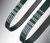 Elastic ribbed belts sections EPH and EPJ consist of a: * Â superstructure* Â elastic tension cord section* Â base The superstructure is made from a fibre-reinforced rubber mixture. The fibres are laid perpendicular to the direction of belt travel and stabilise the belt during dynamic operation.The tension cord is a high modulus polyamide material embedded in a rubber compound and covers the entire width of the ribbed belt. The rib compound is characterised by a high wear resistance.Profile :EPH, EPJ