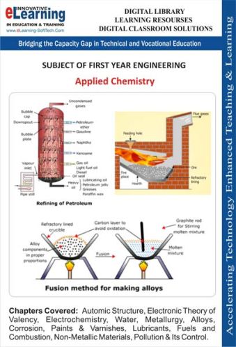 We offer elearning software for applied chemistry.it covers atomic structure, electronic theory of valency, electro-chemistry, metallurgy, alloys, corrosion, paints and varnishes, lubricants, fuel and combustion, non-metallic materials, pollution and its control.